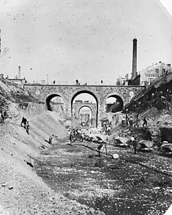 - Luisenbrücke (Pont routier de la Lützner Strasse; avant le , le canal se terminait quelques mètres avant ce pont)[3]