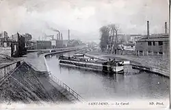 La darse de la Charbonière ou des Magasins généraux, creusée en 1854 à Aubervilliers, vue en 2006. Le pont du Landy (rue du Landy) à Aubervilliers, dans les années 1910. Le port de Saint-Denis.