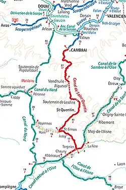 - le canal de Saint-Quentin proprement dit de la Somme à l'Escaut (Cambrai).