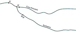 En théorie, le mouvement est variable mais il est généralement schématisé comme un mouvement continu ; il est donc possible de retracer une hauteur de mouvement uniforme et une hauteur critique dans un lit à faible pente () et dont le courant est vraisemblablement lent. On trace le profil d'aval en amont en considérant une section de vallée et, de là, en regardant la vallée, s'il ne se produit pas de perturbation, on considère que le mouvement est uniforme après la section A, on aura donc un profil D2 avant la section A. La présence du canal de dérivation génère le profil présenté sur le schéma.