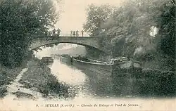 Aux environs de Charmentray.- Un automoteur de canal au pont de la mairie de Pantin.