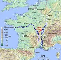 - ↑ Chabert Louis, Le canal du Centre, Université de Lyon département de géographie, , 80 p., Figure 1 Bis