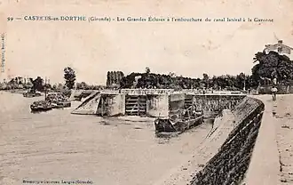 Écluse 53 à Castets en Dorthe donnant sur la Garonne au début du canal.