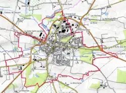 Au XIXe siècle, ce cœur historique fut altéré par le percement de deux axes larges et modernes, destinés à faciliter la traversée de la ville. Il s'agit de la rue de Beaulieu dans un axe nord-sud, ouverte en 1849, et de la rue de Bretagne, dans un axe est-ouest, qui date de 1858-1860[15]. En conséquence de l'envol démographique qui caractérise le XIXe siècle, la ville s'est largement étalée le long des nouveaux axes, notamment le long de la route d'Angers, vers la Grée-Saint-Jacques et autour de la place Saint-Nicolas, qui servait de champ de foire[15].