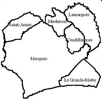 - ↑ « Orthodromie entre Candillargues et Mauguio », sur fr.distance.to (consulté le ).
