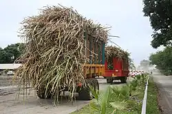 Cannes à sucre coupées prêtes à être transportées à la raffinerie.