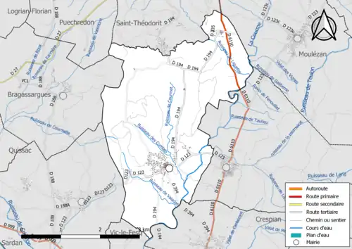 Les communes limitrophes sont Bragassargues, Crespian, Montmirat, Moulézan, Orthoux-Sérignac-Quilhan, Puechredon, Saint-Théodorit et Vic-le-Fesq.