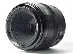 Le EF 50mm f/2.5 Compact Macro est un objectif relativement bon marché, mis sur le marché en 1987, et conçu pour la macrophotographie ; il peut faire le point jusqu'à 23 centimètres et peut agrandir jusqu'à 0,5[9].
