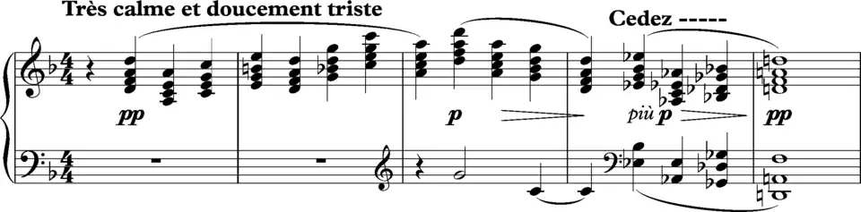 Canope, d'une durée moyenne d'exécution de trois minutes environ[4], est en ré mineur, « très calme et doucement triste », à ![]()