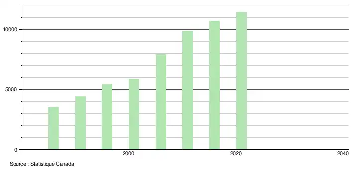 - ↑ Statistique Canada, recensements du Canada pour les années 1991, 1996, 2001, 2006, 2011, 2016 et 2021.