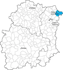 Situation du canton d'Épinay-sous-Sénart dans le département de l'Essonne. | |