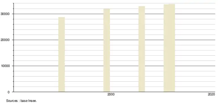 - ↑ Le tableau et le graphique présentent les populations légales publiées par l'Insee et issues des recensements de population. Les enquêtes de recensement étant, depuis la réforme de 2004, réparties sur cinq années, il est recommandé de calculer des évolutions sur des périodes d'au moins 5 ans. Ainsi la population de 2009, ne peut être comparée qu'avec une population antérieure de plus de 5 ans, à savoir, celle de 1999.