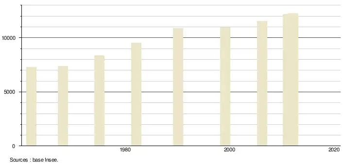 (Sources : Base Insee, population sans doubles comptes à partir de 1962[7] puis population municipale à partir de 2006[8])