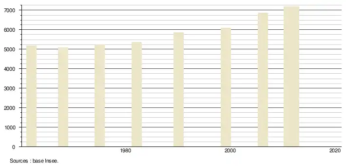 (Sources : Base Insee, population sans doubles comptes à partir de 1962[11] puis population municipale à partir de 2006[12])