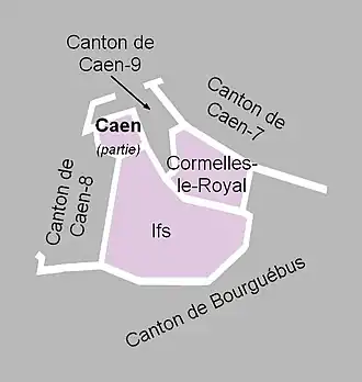 À la suite du redécoupage des cantons pour 2015, les communes de Cormelles-le-Royal et d'Ifs sont rattachées au canton d'Ifs et la partie de Caen de ce canton est intégrée à celui de Caen-4.