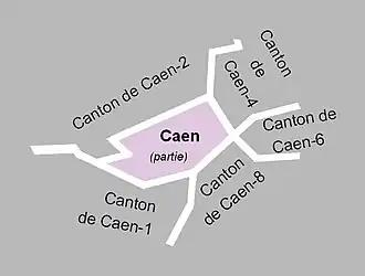 Création de Caen-III le : Le canton de Caen-III comprend les communes de Saint-Contest et d'Epron ainsi qu'une portion du territoire de la ville de Caen[1].