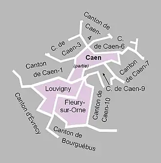 À la suite du redécoupage des cantons pour 2015, les communes de Fleury-sur-Orne et Louvigny et la plus grande partie caennaise de ce canton sont rattachées au canton de Caen-5. La Presqu'île et le cours Montalivet sont intégrés au canton de Caen-4.
