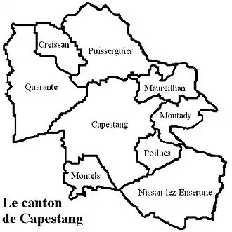 Depuis 2014, les communes du canton de Capestang sont rattachées soit au canton de Saint-Pons-de-Thomières, soit au canton de Béziers-1, soit au canton de Cazouls-lès-Béziers.