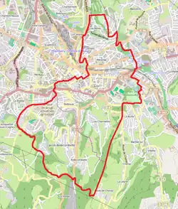 - la partie de la commune de Chambéry située à l'est d'une ligne définie par l'axe des voies et limites suivantes : depuis la limite territoriale de la commune de Bassens, avenue d'Aix-les-Bains (exclue depuis le niveau de la ligne droite tracée depuis l'extrémité de la rue de la Bionne), avenue d'Aix-les-Bains, boulevard de Lemenc, rue Saint-François-de-Sales, rue Victor-Hugo, boulevard du Théâtre, place des Éléphants, rue de Boigne, rue Favre, place du 8-Mai-1945, place de l'Hôtel-de-Ville, rue Bonivard, rue de la Trésorerie, faubourg Maché, place Saint-Pierre-de-Maché, avenue de Lyon, montée Saint-Sébastien, jusqu'à la limite territoriale de la commune de Jacob-Bellecombette.