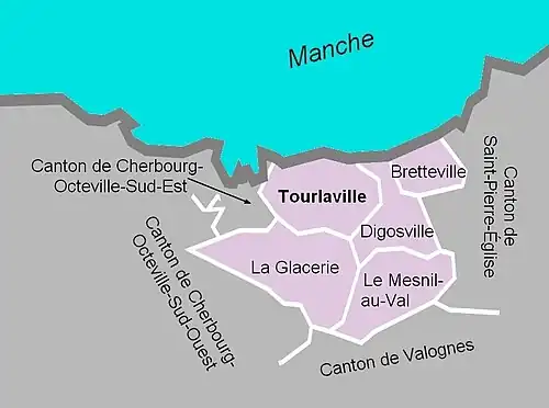 Lors du redécoupage de 2014, le canton de Tourlaville comprenait quatre communes entières[2].