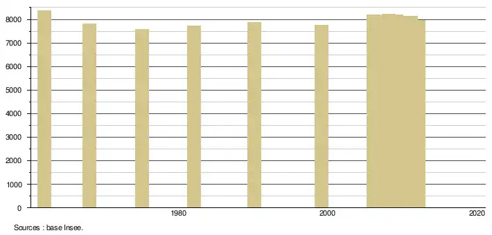 - ↑ Population selon le sexe et l'âge quinquennal de 1968 à 2013 - Recensements harmonisés - Séries départementales et communales