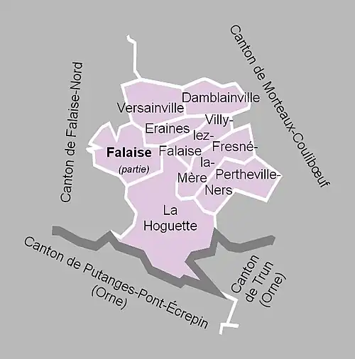 Les anciennes communes suivantes étaient incluses dans le canton de Falaise-Sud[9] :