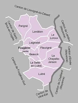 À la suite du redécoupage des cantons pour 2015, le territoire de Fougères est partagé entre les cantons de Fougères-1 et Fougères-2 et les autres communes sont rattachées au canton de Fougères-2.