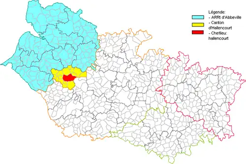 Situation du canton d'Hallencourt[2] dans le département de Somme. | |
