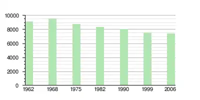 Histogramme de l'évolution démographique depuis 1962 :
