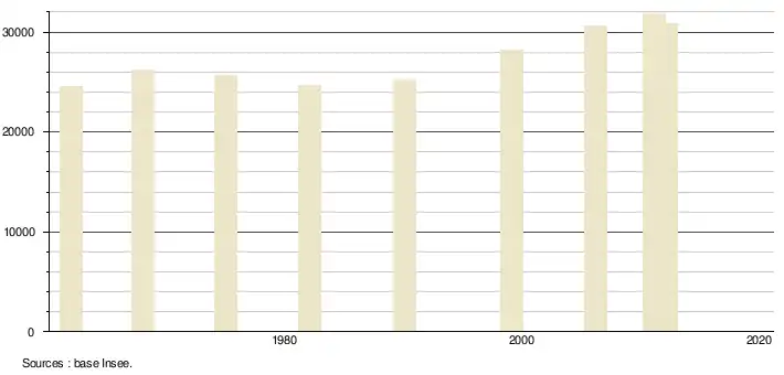 - ↑ Population municipale de référence en vigueur au 1er janvier 2025, millésimée 2022, définie dans les limites territoriales en vigueur au 1er janvier 2024, date de référence statistique : 1er janvier 2022.