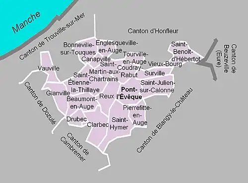 Les anciennes communes suivantes étaient incluses dans le canton de Pont-l'Évêque[23] :