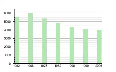 Histogramme de l'évolution démographique depuis 1962 :