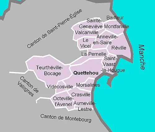 Les anciennes communes suivantes étaient incluses dans le canton de Quettehou[3] :