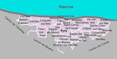 Les anciennes communes suivantes étaient incluses dans le canton de Ryes[13] :