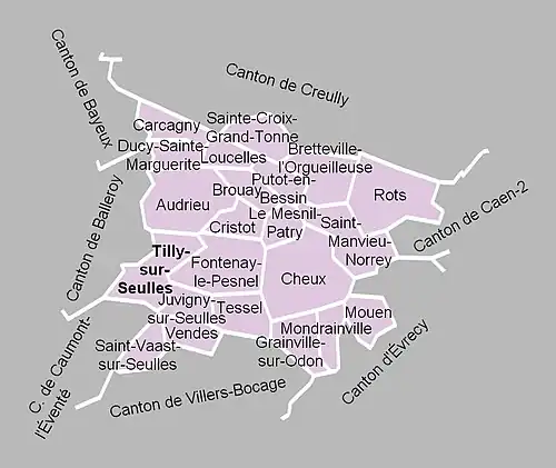 Les anciennes communes suivantes étaient incluses dans le canton de Tilly-sur-Seulles[6] :