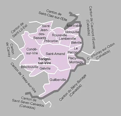 Situation du canton dans l'arrondissement de Saint-Lô. | |