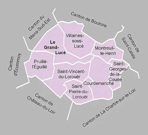 Le canton du Grand-Lucé comptait 5 810 habitants en 2012 (population municipale) et regroupait huit communes :