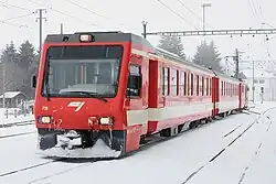 Le canton du Jura dispose de 115 km de réseau ferré distribués sur cinq lignes[15]. La ligne RER (Porrentruy - Delémont - Bâle - Olten), le RE (Delle (F) - Boncourt - Porrentruy - Delémont - Bienne) et trois lignes des Chemins de fer du Jura (CJ) : Porrentruy-Bonfol, Glovelier - Le Noirmont - La Chaux-de-Fonds et Le Noirmont - Tramelan - Tavannes.