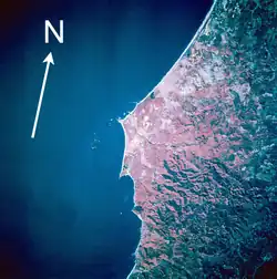 - Vue en direction du sud depuis le cap Blanco, Port Orford Heads State Park et Humbug Mountain à l'arrière-plan.