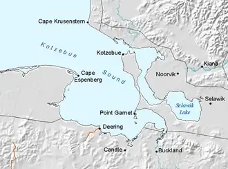 - (en) Cet article est partiellement ou en totalité issu de l’article de Wikipédia en anglais intitulé « Cape Krusenstern » (voir la liste des auteurs).