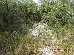 Oppidum de Garaste (Hérault), vue vers le nord du centre supposé marqué par une canne plantée. | |