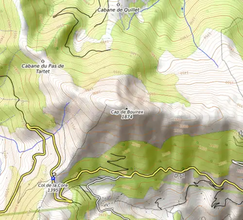 Le col de la Core et le cap de Bouirex, versant sud. | |