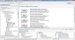 - La zone « navigateur méthodologique » qui expose à l'utilisateur les différentes phases d'ingénierie pour la modélisation de son architecture, et des raccourcis pour créer de nouveaux diagrammes en lien avec la phase d'ingénierie considérée ; cette vue permet également de faciliter la « transition » entre phases d'ingénierie, de façon à créer les liens de réalisation entre phases et les éléments associés ;