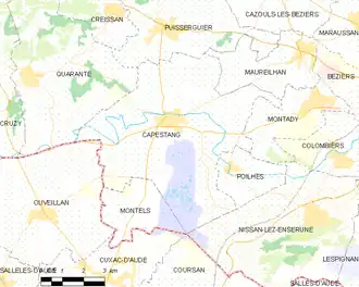 - ↑ « Orthodromie entre Capestang et Lespignan », sur fr.distance.to (consulté le ).