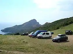 - Le cap est accessible par un sentier unique qui descend d'abord en pente douce dans le maquis. Relativement facile sur les trois quarts de parcours jusqu'à l'unique cabane en ruine au pied de la montagne, lieu où paissent quelques vaches, le chemin aborde ensuite une forte côte en contournant le cap par l'ouest, en empruntant une faille de la roche, aménagée de quelques murets et escaliers sommaires, en direction de la tour. Le parcours, jamais à l'ombre de forêts, étant plus rude sous le soleil de l'été, il est nécessaire de prévoir de la boisson. D'une longueur de 8 km aller et retour, d'un dénivelé de 450 m, et d'une durée de 3 heures 30 environ aller et retour, la randonnée, qui oblige à revenir sur ses pas, nécessite une assez bonne condition physique et des chaussures adaptées aux chemins pierreux.