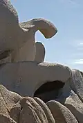 L'activité d'extraction du granite se déroulait le long du littoral permettant de charger facilement le matériel sur les navires. La taille « à gradins » est visible sur les falaises et il reste d'énormes blocs coupés et équerrés.