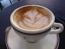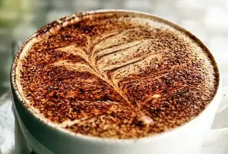 Le latte art désigne la création, dans certains cafés et restaurants, de motifs décoratifs artistiques sur un cappuccino par un artiste barista. Il existe même un championnat du monde de Barista annuel, World latte art Championship[9].