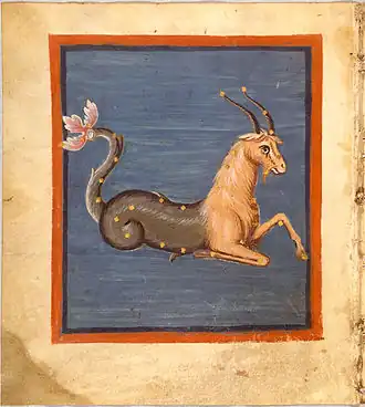 Par la suite, c'est-à-dire au début du Ier millénaire av. J.-C., le ciel est organisé en constellations, c'est-à-dire que les étoiles sont désormais nommées par leur situation dans les figures célestes, et comme cela est attesté dans les fameux éphémérides qui s'étalent de 652 av. J.-C. à 61 de notre ère, SUḪUR.MÁŠ = suḫurmāšu, littéralement « la Carpe-chèvre » est désormais la figure dont nous avons déjà parlé dans laquelle β Cap est SI MÁŠ, « la Corne de la Chèvre »[3].