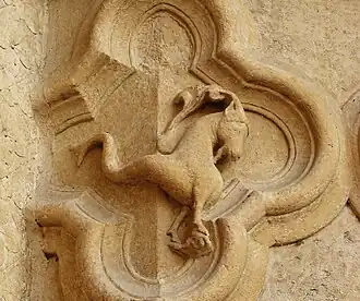 Le Capricorne (Capricornus), un des signes du zodiaque complet figurant sur le portail gauche de la façade de la cathédrale d'Amiens.