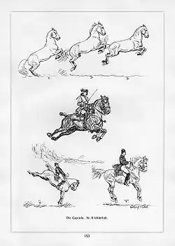 Au XVIIe siècle l'équitation de cour adopte la capriole comme exercice de dressage.